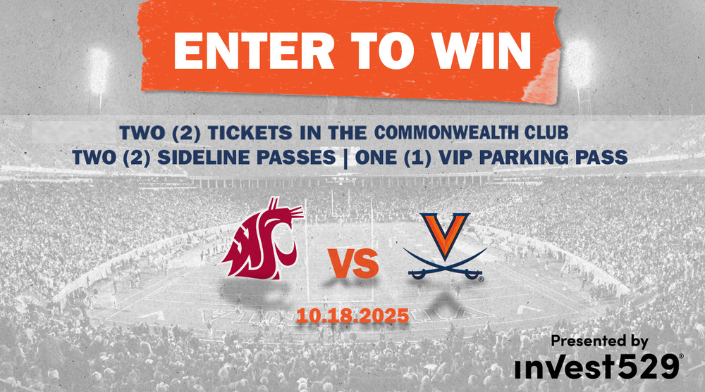 Complete the fields below to be entered to win two (2) tickets in the Commonwealth Club, two (2) sideline passes, and one (1) VIP parking pass for the UVA vs. Washington State game on Saturday, October 18th, courtesy of Invest529