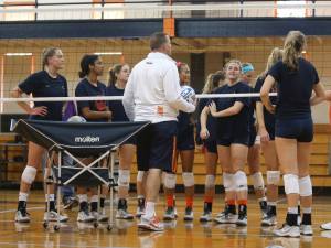 The second half of practice we did competition drills such as hitter vs hitter and working on siding out in every rotation. We all love when we get into the competing portion of practice because we are able to put everything together that we have been working on plus the atmosphere in the gym gets a lot louder! We had a special guest appearance today from former Penn State player Kristin Carpenter which was a huge honor. She brought a lot of insight from her years of playing and gave us advice on things to work on as a team. We have worked extremely hard this preseason and I’m excited to see all this hard work pay off in our first tournament at Marshall next weekend! Go Hoos!