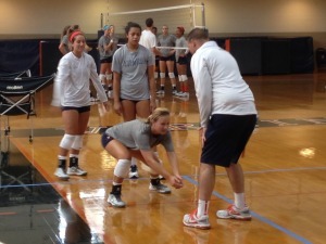 This morning we had a light practice. We came in at different times based on our positions. The passers worked on passing balls being served cross court and then down the line. Our passing has gotten better since the first day of preseason but it is still something we need to work on everyday we are in the gym. The hitters worked on blocking and also tooling the block when they get into a position that the ball is tight to the net. In the afternoon we went hard for three hours. We worked on a lot of defense in the beginning of practice with drills such as Coach-on-4 and the Neville Drill. With defense we always work on going for everything which is Coach Hohenshelt’s #1 rule.