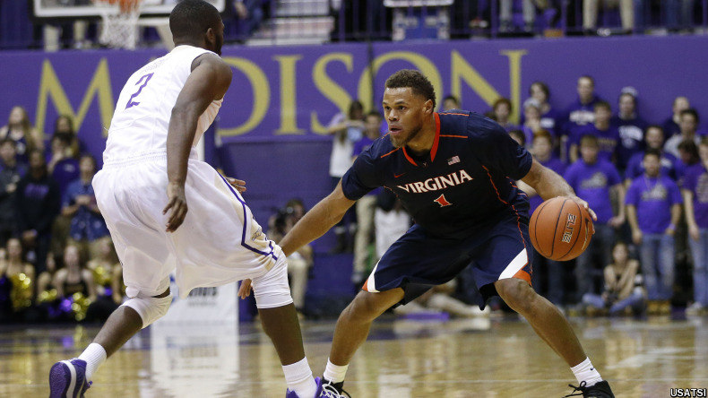 The Cavaliers played without starting point guard London Perrantes and reserve swingman Evan Nolte as they both served suspensions for off-season team rules violations, but they didn’t need them. Redshirt freshman Devon Hall started in Perrantes’ place and had 5 points, two assists and five steals in 27 minutes.