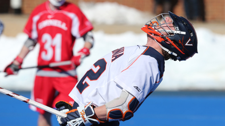 CHARLOTTESVILLE, Va. – James Pannell scored six goals and No. 7 Virginia (4-1) survived a late surge by No. 8 Cornell (3-2) to escape with a 15-14 triumph on Saturday afternoon at the UHall Turf Field. Field conditions due to inclement weather in the Charlottesville area forced the game from historic Klöckner Stadium to the UHall Turf Field. The Cavaliers are now 19-2 all-time at the alternate venue.