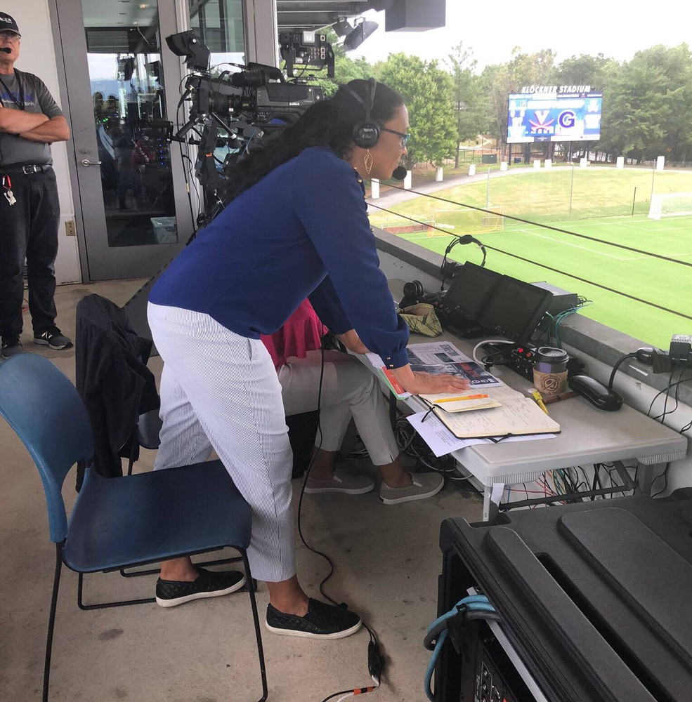 In addition to calling MLS games, she’s provided analysis for World Cup games, and she’s a regular on ACC Network broadcasts.