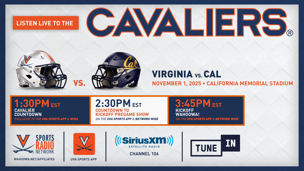 Radio: Virginia Sports Radio Network, Virginia Sports Mobile App, TuneIn App, SiriusXM Channel 106 or 194