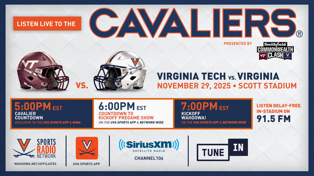 CHARLOTTESVILLE, Va. – The Virginia Cavaliers can give added weight to their historic season with a victory over their in-state rival, although unlike seasons in recent memory, this campaign won’t come to a close quite yet. Already bowl-eligible for the first time since 2021, No. 17/18 Virginia (9-2, 6-1 ACC) hosts Virginia Tech (3-8, 2-5) on Saturday as part of the annual Smithfield Commonwealth Clash, also UVA’s sixth game under the Scott Stadium lights this season. Kickoff is set for 7 p.m. on ESPN and the Virginia Sports Radio Network.