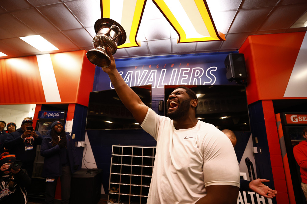 In the home locker room, head coach Tony Elliott hoisted the Commonwealth Cup in front of his jubilant players. The win was the Hoos’ first over the Hokies since 2019.